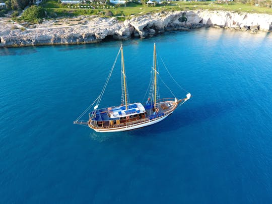 Salpate a bordo di Harmony Yacht dal porto di Ayia Napa per un viaggio panoramico di tre ore, passando per le grotte marine, l'aspro Capo Greco e la bellezza smeraldina della baia di Konnos. Tuffatevi nelle acque scintillanti per una nuotata o uno snorkeling, o semplicemente rilassatevi sul ponte. A bordo sono disponibili bevande analcoliche, birre e vini, oppure potete portare con voi i vostri rinfreschi. Questo piacevole viaggio in barca ha un'atmosfera vacanziera.