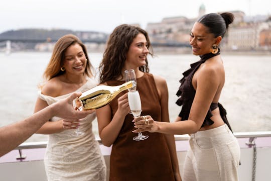 Relaxe em um cruzeiro ao pôr do sol ao longo do Rio Danúbio com uma bebida na mão - é a maneira perfeita de terminar um longo dia de turismo ou se aquecer para uma noite em Budapeste. Navegue durante o pôr do sol, onde você poderá desfrutar das vistas mais fabulosas de Budapeste enquanto a cidade se ilumina à noite. Enquanto aprecia a vista, delicie-se com dois coquetéis preparados na hora a bordo. Não perca a oportunidade de conhecer Budapeste no melhor momento, no conforto de um assento no terraço ou relaxe no convés inferior com ar-condicionado (aquecido no inverno). Traga sua família, seu parceiro ou amigos e passe uma noite mágica!